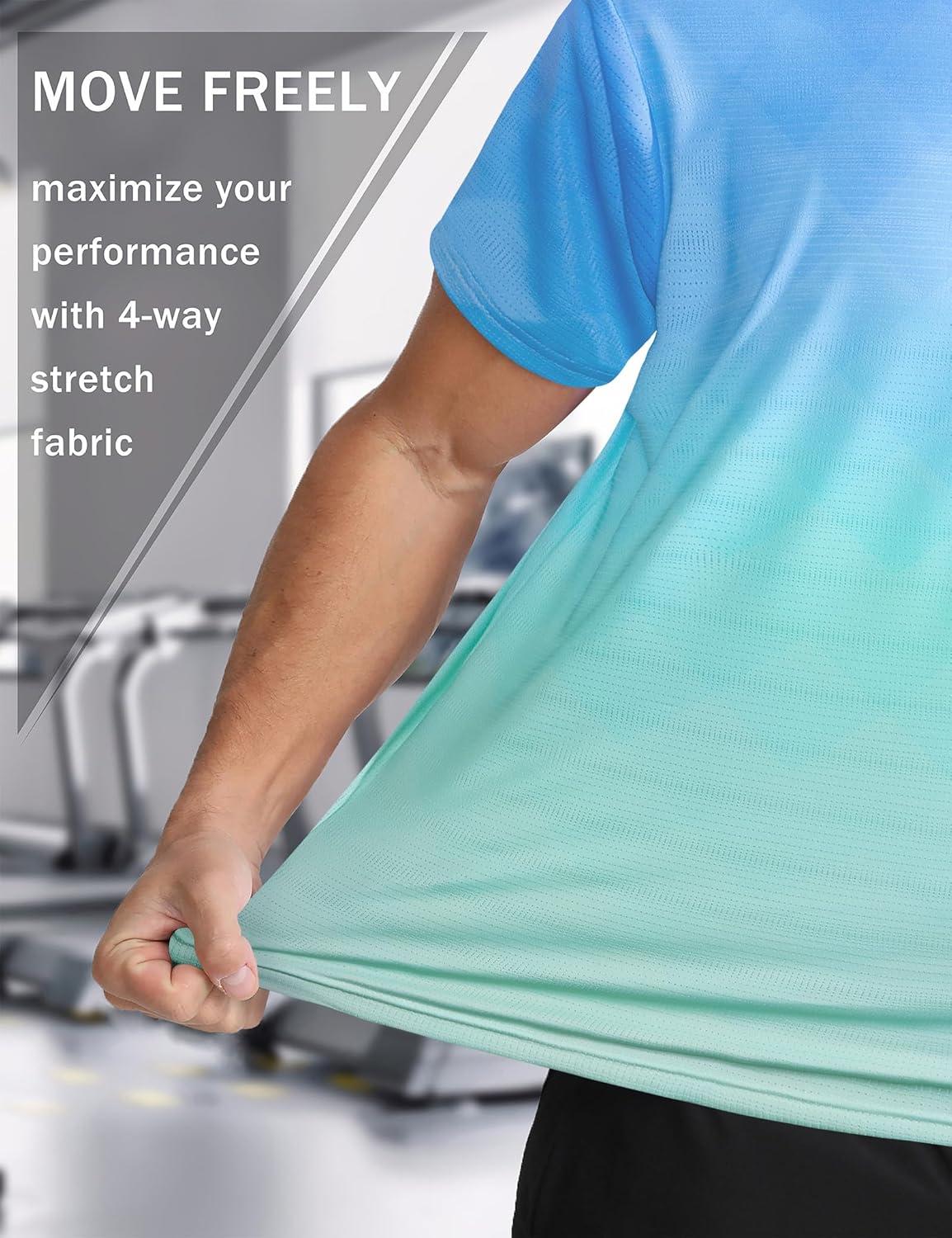 Men's Athletic T-Shirt Performance Gym Shirt Quick Dry Moisture Wicking Running Workout Short Sleeve Tops(Bluegreen Gradient)