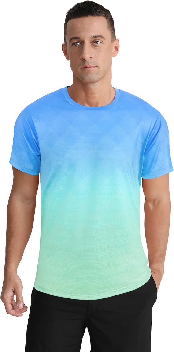Men’s Athletic T-Shirt Performance Gym Shirt Quick Dry Moisture Wicking Running Workout Short Sleeve Tops(Bluegreen Gradient)