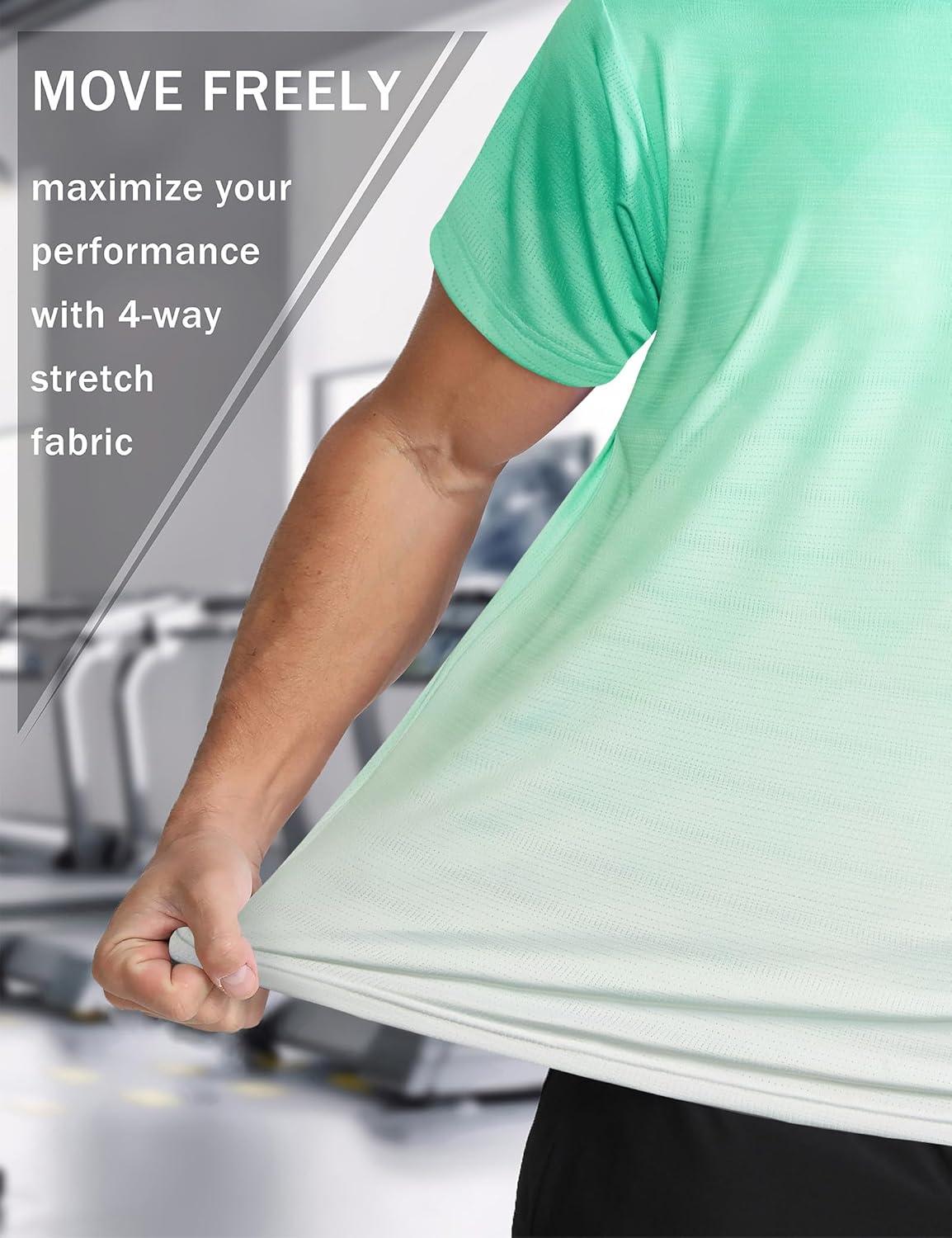 Men’s Athletic T-Shirt Performance Gym Shirt Quick Dry Moisture Wicking Running Workout Short Sleeve Tops(Gradient Cyan)