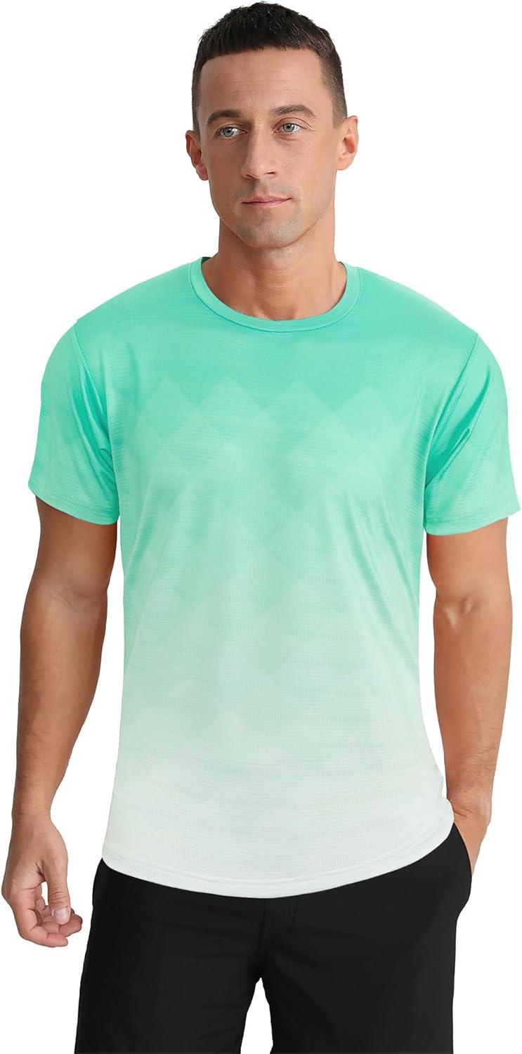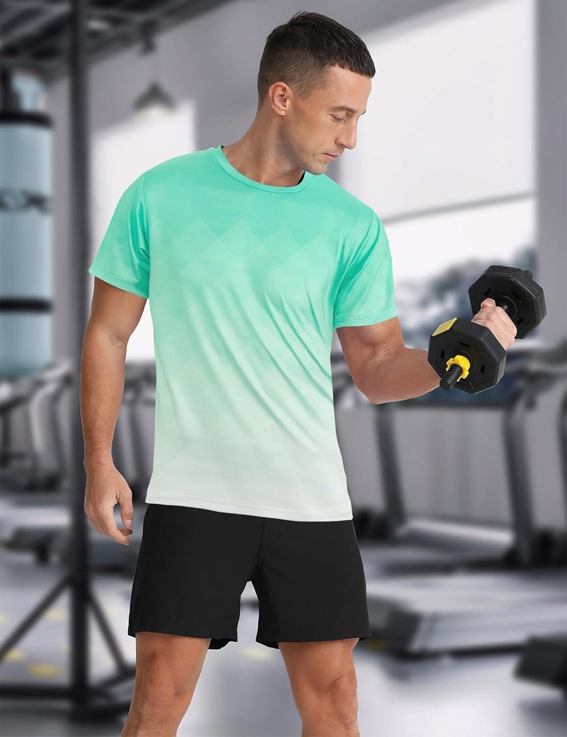 Men’s Athletic T-Shirt Performance Gym Shirt Quick Dry Moisture Wicking Running Workout Short Sleeve Tops(Deep Bluegreen Gradient)