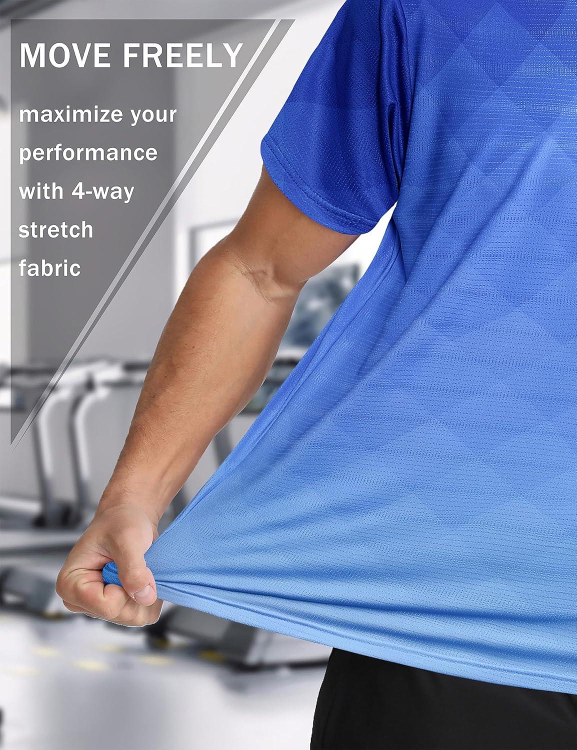 Men’s Athletic T-Shirt Performance Gym Shirt Quick Dry Moisture Wicking Running Workout Short Sleeve Tops(Gradient Royalblue)